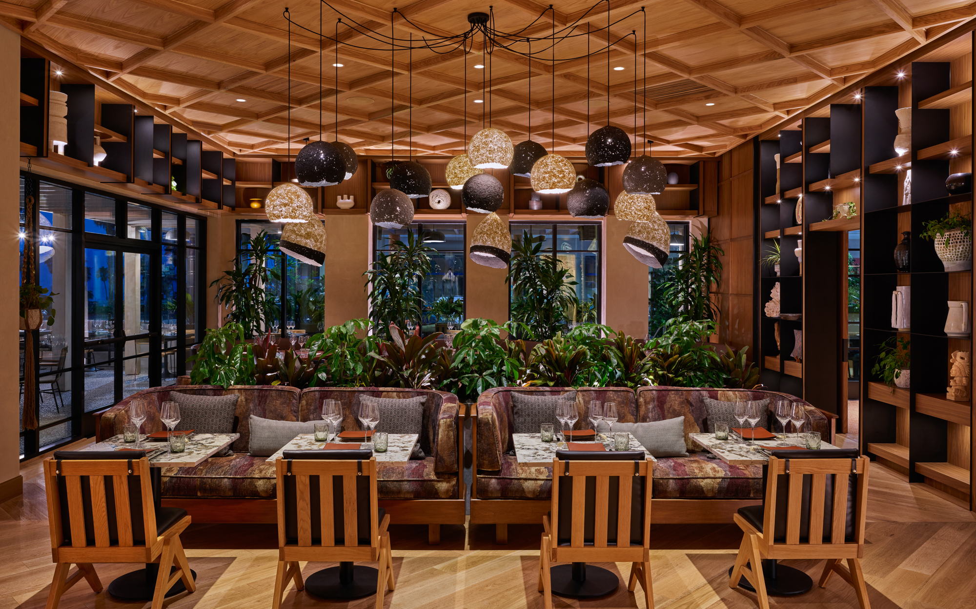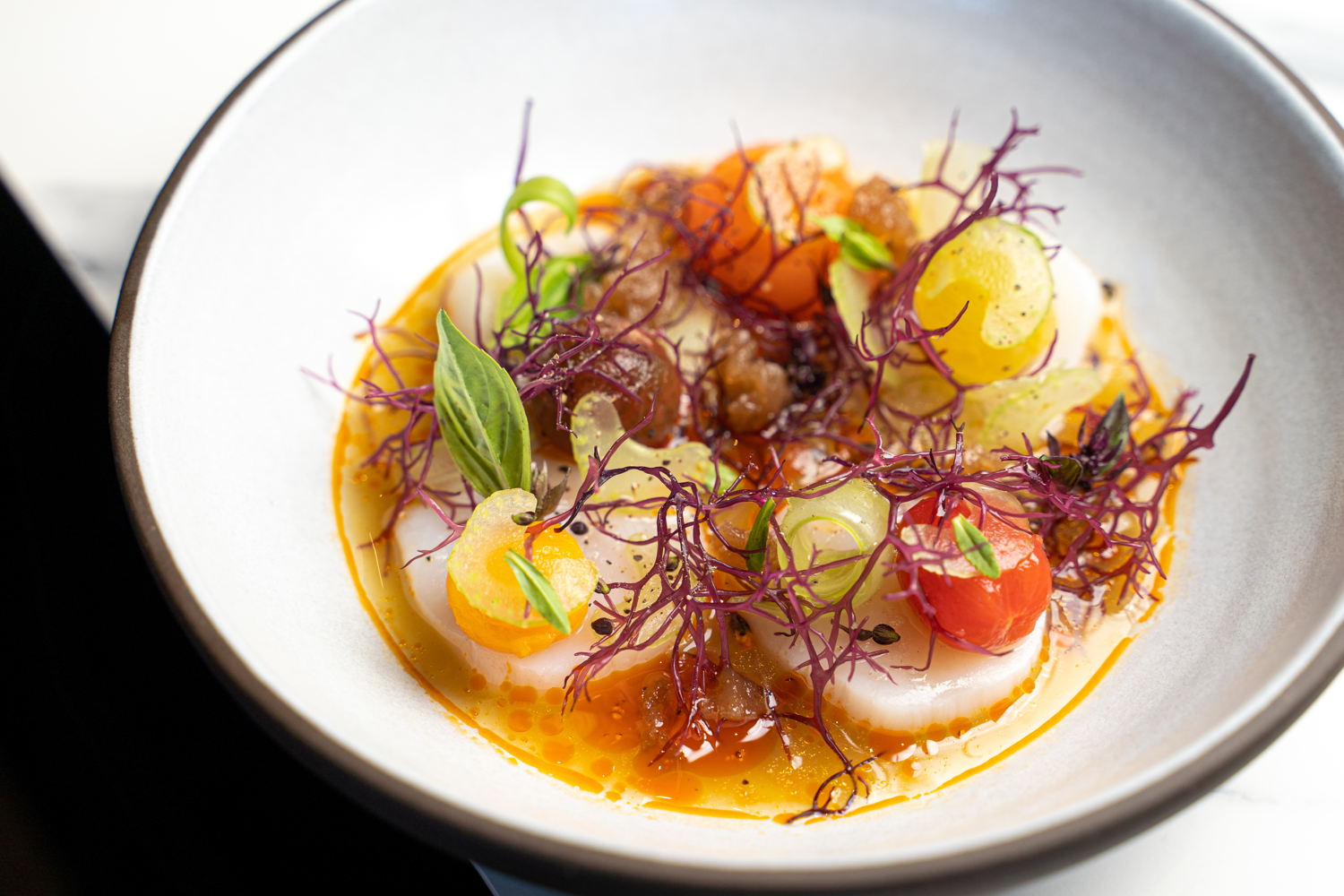 Lucien ha generado gran expectativa desde su apertura en La Jolla, ya que ofrece exclusivamente un menú degustación de diez tiempos del Chef Elijah Arizmendi, cuya trayectoria incluye restaurantes con estrella Michelin como Per Se y l’abeille. El íntimo comedor cuenta con solo 30 asientos, y la experiencia comienza en el patio con canapés y bebidas antes del servicio principal. El menú de Arizmendi es hiperestacional y enfatiza mariscos, productos y vinos de California, e incluye creaciones como una rica crema de huevo servida en su cáscara y cubierta con caviar oscietra, un surtido de mariscos acompañado de helado de ostión y ribeye wagyu de Masami Ranch.